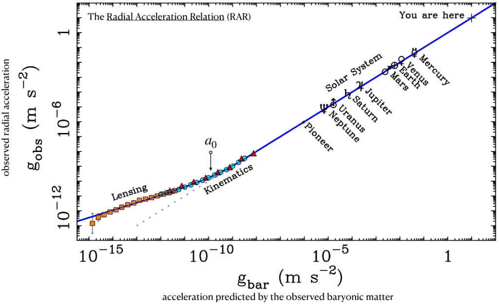 Particularly if we look at the planets and the binned data from both galaxy kinematics and galaxy weak gravitational lensing we see that the area where the influence of choosing one interpolation function over the other is relevant is a very small part of the available range of the data.