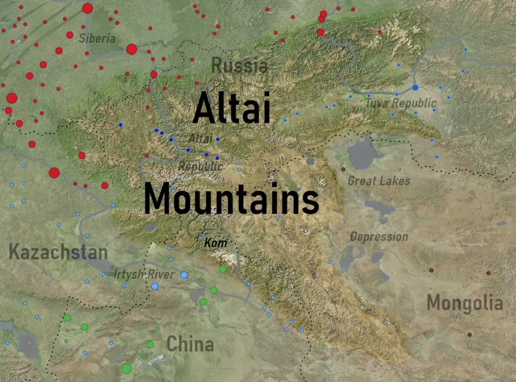 I couldn’t find a decent map of the Altai mountains showing the ethnic groups as well as the population density to get an overview so I made the one below. I think it says a lot about the Altai mountains that even Siberia looks densely populated in comparison. (You may have to enlarge it on a laptop to read it properly)