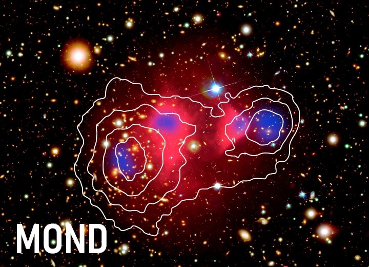 This is a fundamental feature of MOND and is outlined in the introductory sections of any serious paper on the subject. Anyone using the Bullet Cluster as an argument against MOND simply misunderstands the theory. If this applies to you, thanks for taking the time to read up on the annoying upstart competition that just won’t die. While MOND does face challenges when applied to galaxy clusters, as we will explore later in this post and the next, the narrative outlined above is simply incorrect.