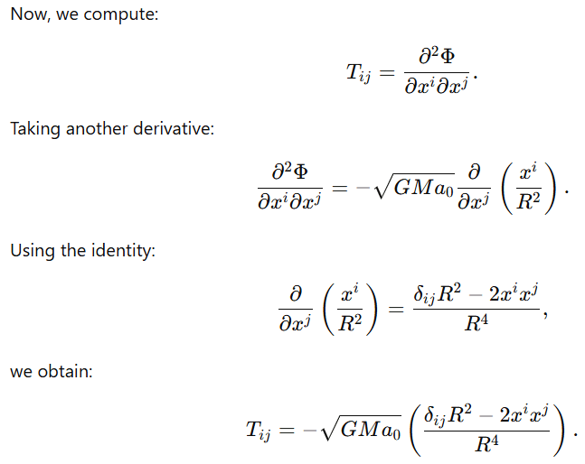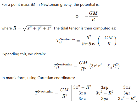 For an analytical analyses we once again use the tidal tensor. We assume we are only dealing with the Deep-MOND regime. The tidal tensor for MOND then equals: