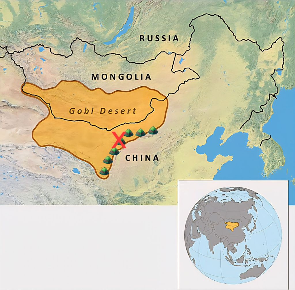 Deze foto vormt de zuid-oost grens van de Gobi-woestijn: